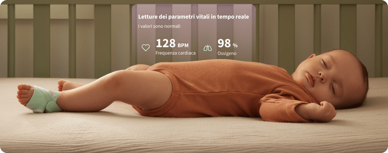 Benvenuto in una nuova era dell'assistenza infantile con monitor dotati di certificazione sanitaria che portano il monitoraggio di livello professionale a casa tua. Visualizza letture dei parametri vitali in tempo reale e ricevi notifiche per la massima tranquillità.